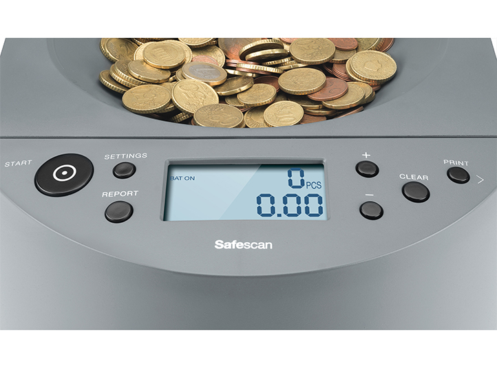 Dank seinem großen Aufnahmetrichter kann der Safescan 1200 bis zu 500 Münzen aufnehmen und mit einer Geschwindigkeit von bis zu 220 Münzen pro Minute zählen.